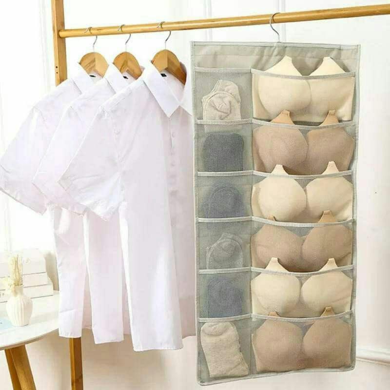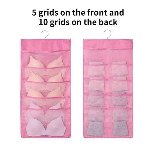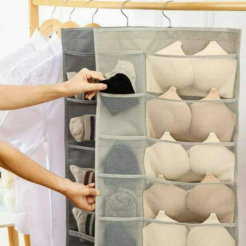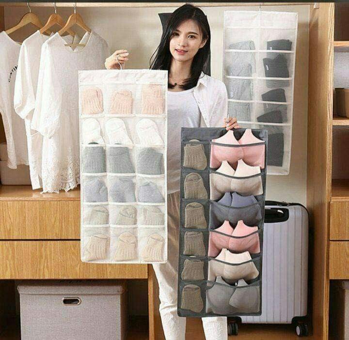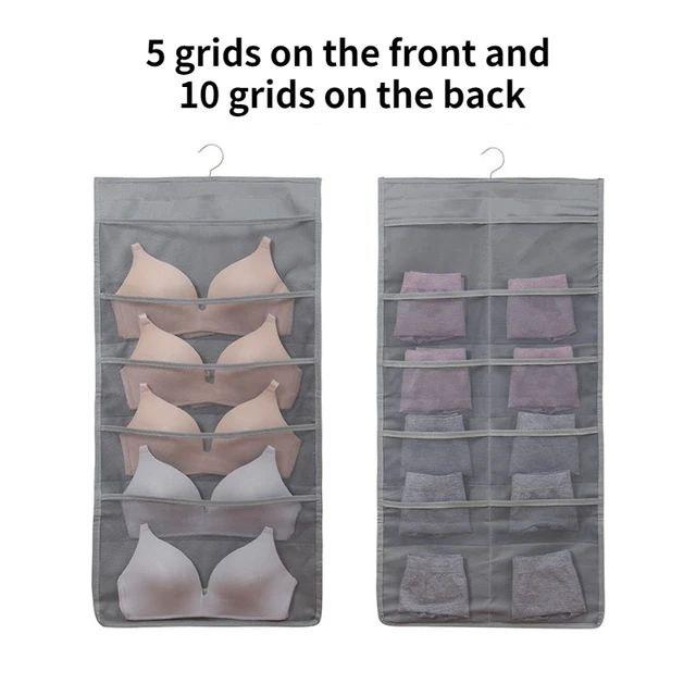 منظم ملابس داخلية معلق احترافي مزدوج الوجهين، الحل المثالي لتنظيم الشرابات والبراهات والملابس الداخلية بداخل الدولاب بكل سهولة وترتيب!