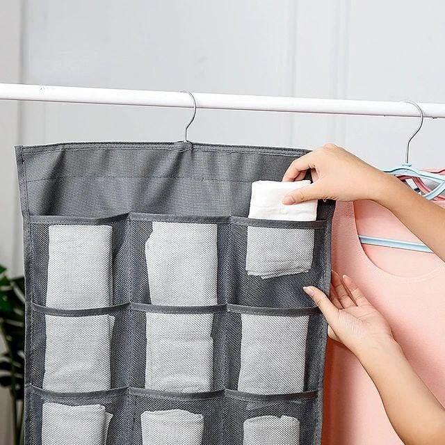 منظم ملابس داخلية معلق احترافي مزدوج الوجهين، الحل المثالي لتنظيم الشرابات والبراهات والملابس الداخلية بداخل الدولاب بكل سهولة وترتيب!
